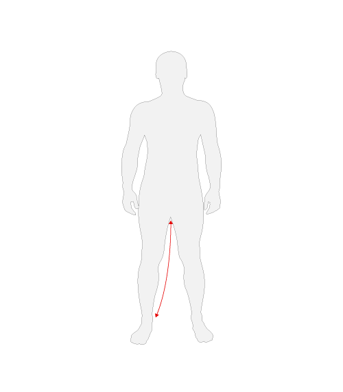 Measure from top of inside thigh to bottom of ankle, while standing with straight legs.